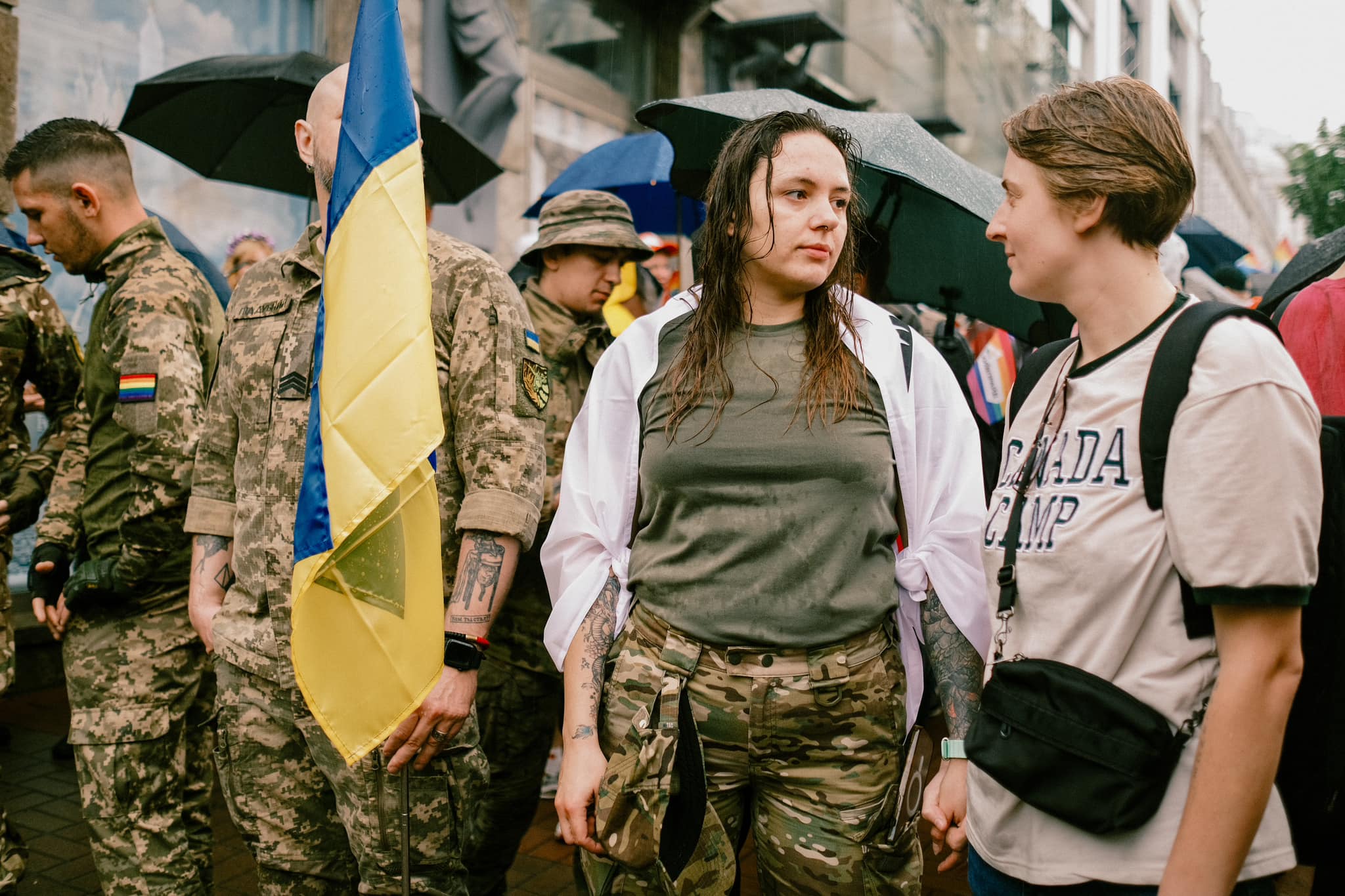 «Έτσι τώρα, για εμάς, δεν υπάρχει άλλη επιλογή» Kravchuk λέει. «Είτε θα οικοδομήσουμε μια σύγχρονη ευρωπαϊκή δημοκρατία, είτε θα εξαφανιστούμε. Εκατομμύρια Ουκρανοί βλέπουν τώρα ότι αυτοί που επιτίθενται στους κουήρ ανθρώπους είναι οι ίδιοι που επιτίθενται στην Ουκρανία. Η σύνδεση είναι σαφής».